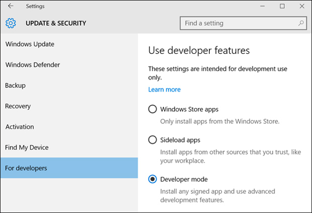 Developer ေတြအတြက္ ထည့္သြင္းေပးလိုက္ပါတယ္။ အဆိုပါ Feature ဟာ Windows 10